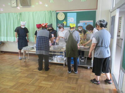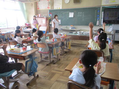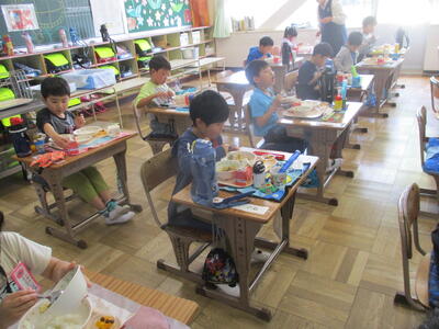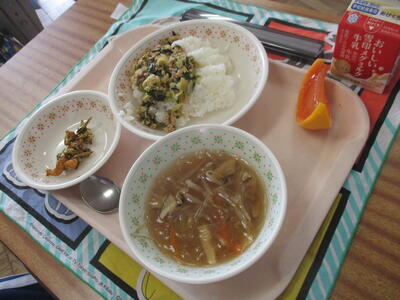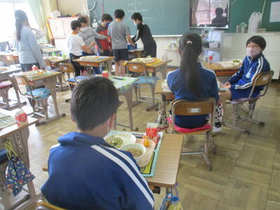 1年生 配膳、手際が良いですねぇ。 もうすぐ2年生だものね!