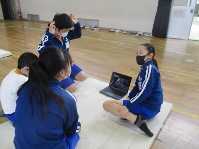 5年生 体育館 「祝う会」練習中! もちろん内容は秘密です。