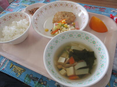 コーンピラフにわかさぎフリッター、根菜スープにスパゲティサラダ・・・