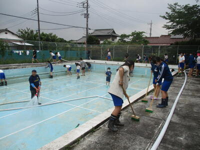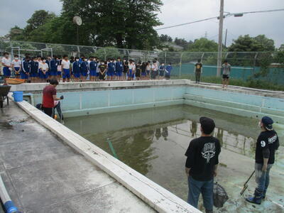 1・2年生 プールの日でしたね! 「ヒトデ」になりきり中!