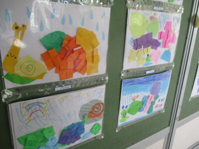 2年生 廊下掲示 おぉ~、きれいなものができましたなぁ~。