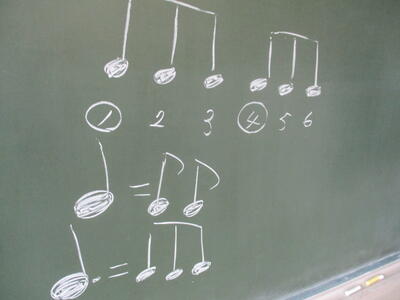 「ジャムボード」に何やら書いていますが・・・、音符じゃないね。