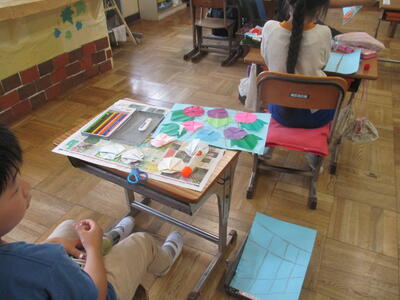 1年生 ぶんぶんぶん・・・、 蜂の音楽を聴いて、創作中!