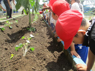 2年生 野菜に水をかけています。 食べられそうになってきたね。