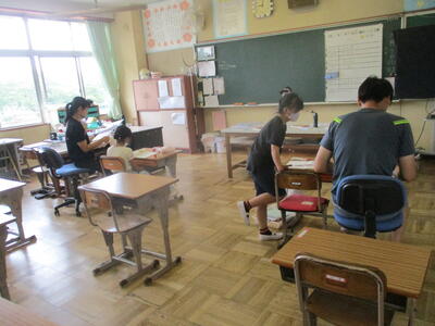 図書室 ボランティアの方々が「蔵書点検」を実施中!
