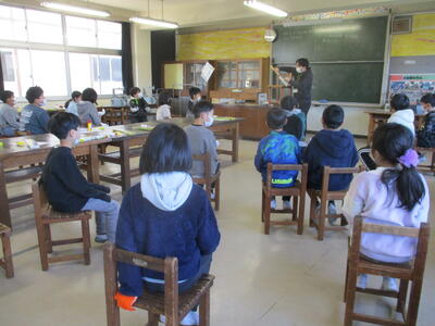 6年生から東部小学校「150年の輝跡」の説明がありました。