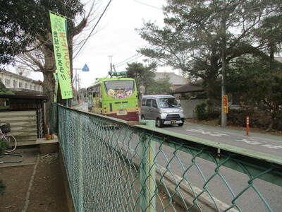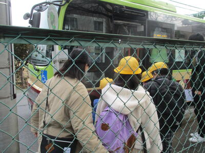 今日は学校前の停車場から「まめバス」に乗って市役所へ向かいます。