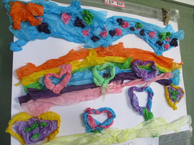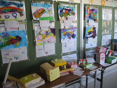 作品がたくさん飾られています。 学習参観で御覧いただきましょう!