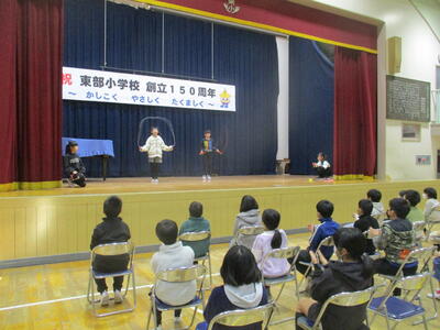 3時間目 体育館 4年生のリハーサルを3年生が見学!