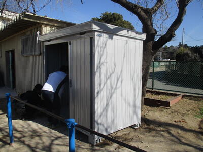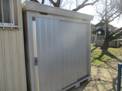校庭に、新しい「物置」が設置されました!「イナバ」ってシールがあります!