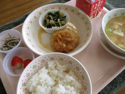 ・豚汁 ・小魚 ・イチゴ ・ごはん ・牛乳