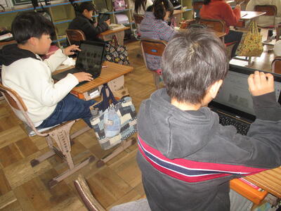 4年生 習字の時間です。真剣に・・・。ていねいにかいています。