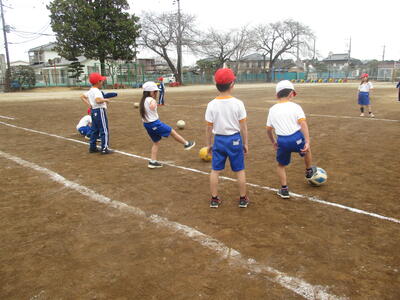 1年生 一応、たいいく・・・です。 が、工作したものを転がしています。