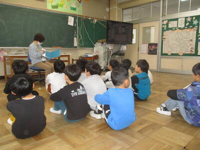 読み聞かせボランティアの方々が、学年にあった本を選んで読んでくださいました。