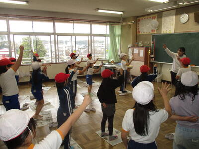 4年生 体育の時間ですが、その前にちょっと「よびかけ」練習!
