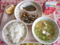 きつねごはん 牛乳 ししゃものガーリック焼き