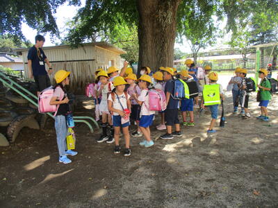 強い日差しを避けて、大銀杏の下で並びます。 また、明日!!