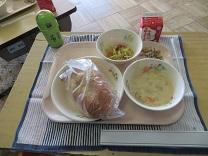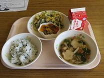 この日は、わかめご飯。千草焼き、野菜のごま和え、すまし汁。調理員さんも、炊きあがりが違うと絶賛。とてもおいしいお米でした。どうもありがとうございました。