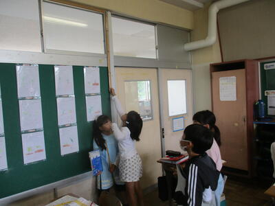 2年生 廊下掲示 おぉ~、きれいなものができましたなぁ~。