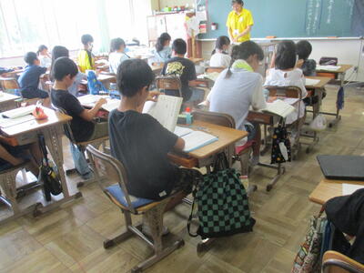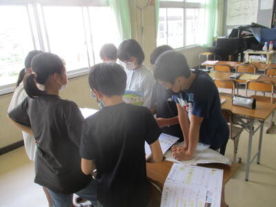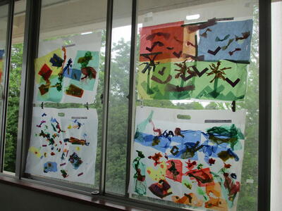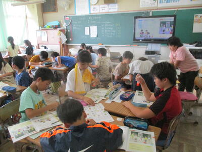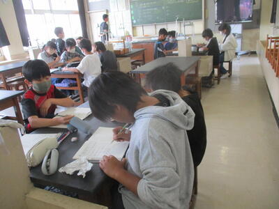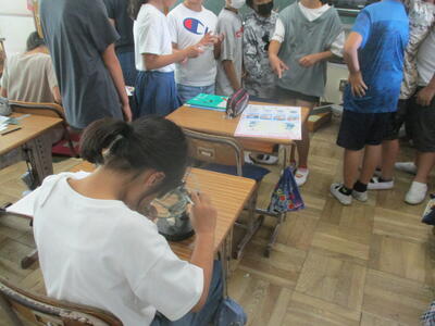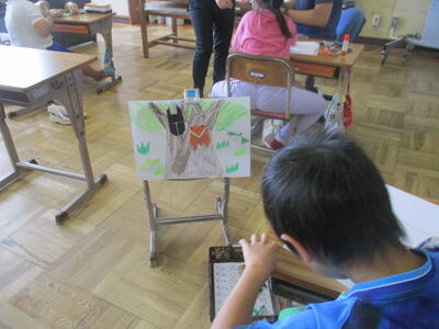 2年生も、なにやら創作中ですねぇ。 いずれ、掲示されますか?