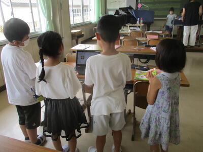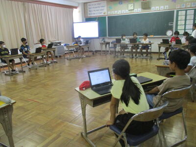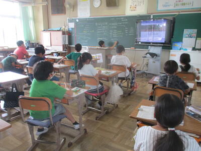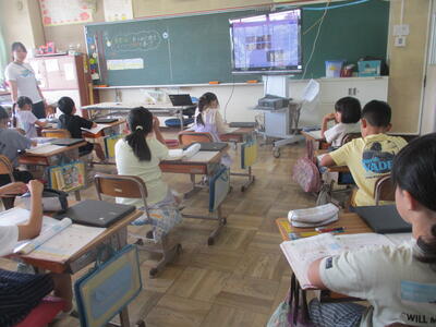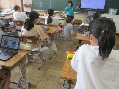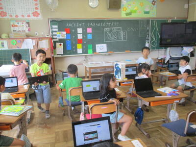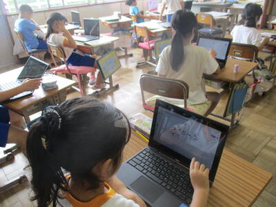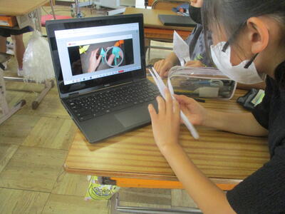 4年生 クロームブックで「折り鶴」の作り方を確認中!