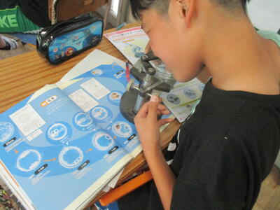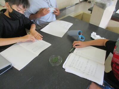 メダカの卵を観察している様子です。 見えますか? 見えません。