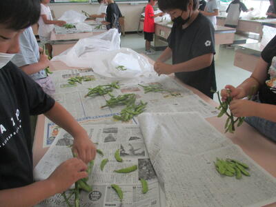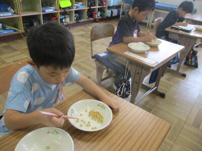 3年生 家庭科室 「枝豆」を「えだ」と「まめ」に切り離しています。