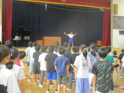 最後に「全校合唱」! 「笑顔で体育館に虹をかけましょう」