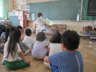 2年生 担任の先生に本を読んでいただいております。 何の本でしたか?