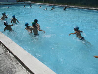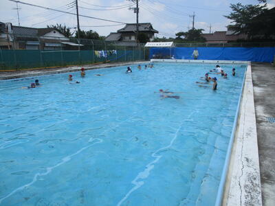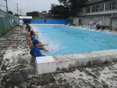 3・4年生 プール! なぜだか、ツバメが水面に寄ってくるんですね。