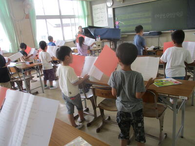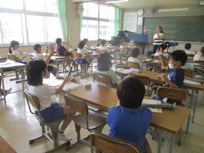 1年生 音楽 「♪ぶんぶんぶん」 いやぁ~。 雨雲呼んじゃったねぇ。