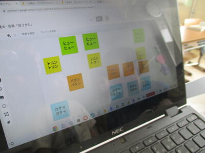 「ジャムボード」に何やら書いていますが・・・、音符じゃないね。