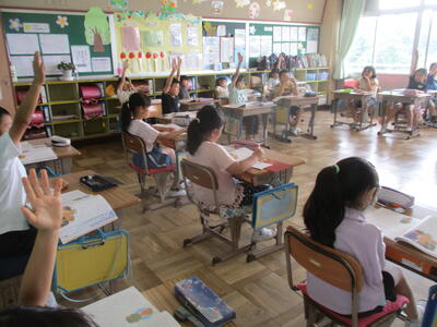 6年生 理科 みなさん、胸に手を当てていますが、「何のお祈りですか?」
