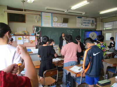5年生 外国語 「ロック シザーズ ペイパーズ ワン ツー スリー」
