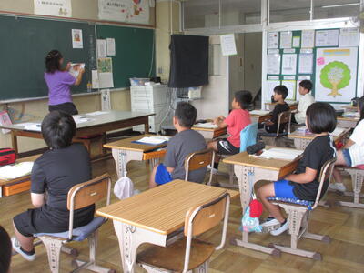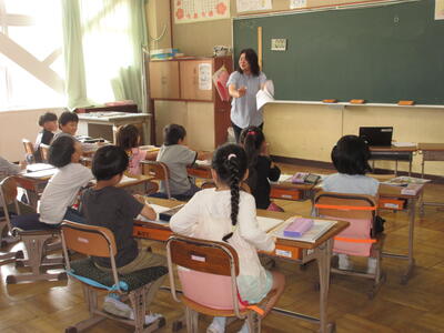 2年生は観察カードの書き方について。生き物について学習してきた2年生は、観察カードにどんなことを書くと良いのか、国語の学習です。