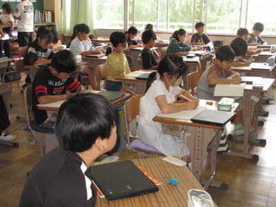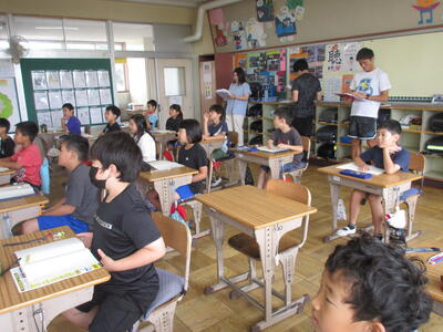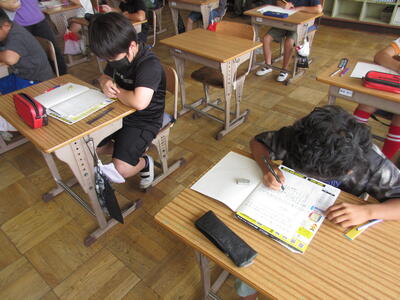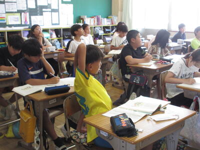 5年生は国語で、主題を考えていました。筆者の主張をまとめ、高学年はそれに対する意見を持つことも学習します。