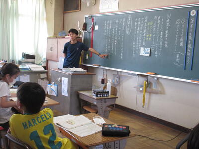 1年生は、担任の先生とひらがなの学習中。今週は校外学習があったので、土曜授業までよく頑張りました。