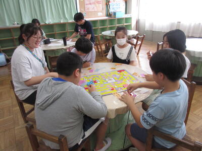 異年齢で、「ウノ」や「人生ゲーム」を楽しみました。校内で堂々とゲームで遊べるのもいいですね。