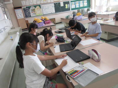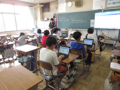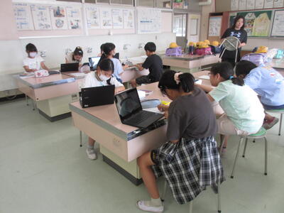 4年生は、暮らしを支える社会の仕組みについて学んでいます。この日はごみについて振り返って考えました。Chromebookを活用していました。