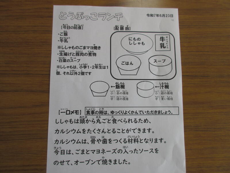 6月17日は「野田の恵を味わう給食の日」でした。