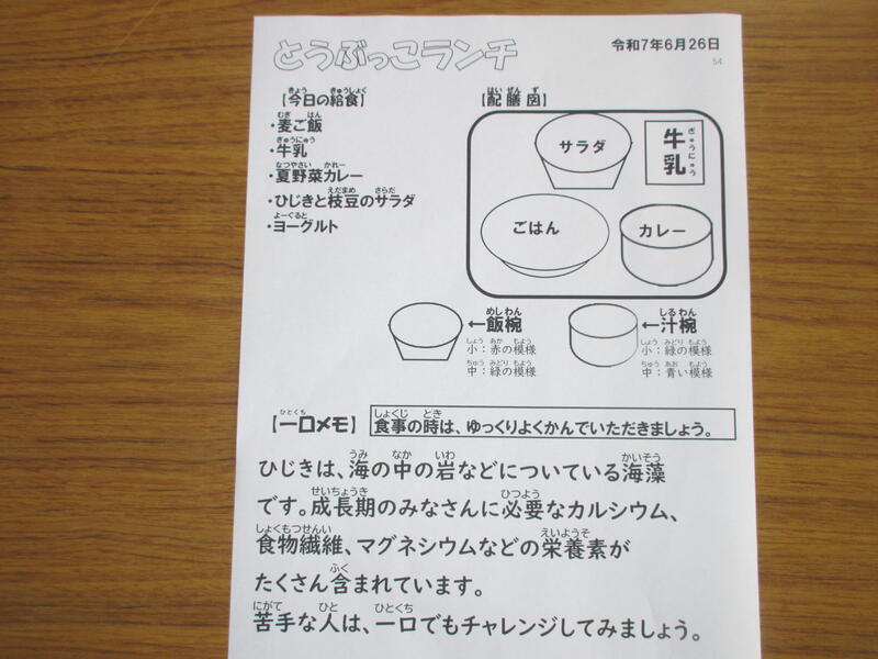 今日は、みんな大好き夏野菜の東部っ子カレーでした。ひじきも大好きです。ごちそうさまでした。