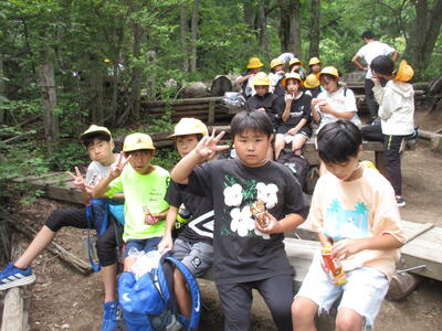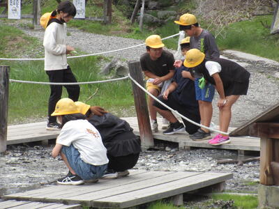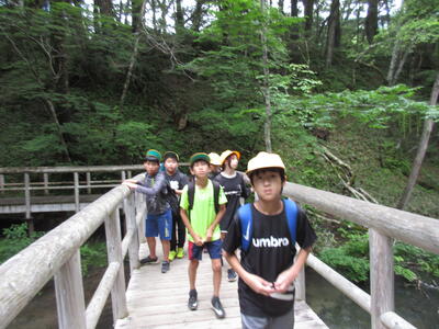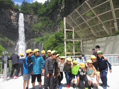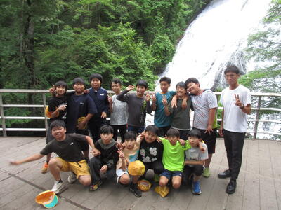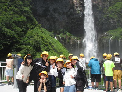 ハイキングの後、湯滝を見学しました。疲れを見せずに水辺で遊ぶ姿が見られました。