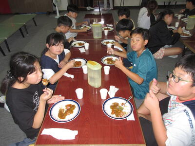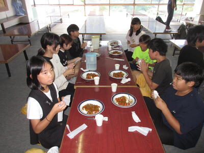 カレーをいただきました。3種類のルーを合わせているそうで、とても美味しくて、先生方の心配をよそに、何度もおかわりしていました。