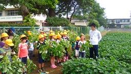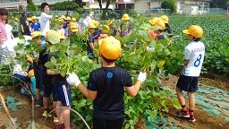 3年生が遠藤農園で、枝豆の収穫体験を行いました。粒のそろった立派な枝豆を収穫し、葉っぱをとりました。明日は、全校で野田の郷土料理の「ごじる」を食べます。鞘むきは、4年生と6年生が担当します。