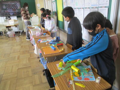2年生教室 作ったおもちゃの使い方説明はしっかりできましたか?