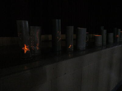 6年生は卒業制作の一環で竹灯籠を作りました。
