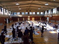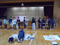 体育館では、巨大パチンコ、山小ゲームコーナー、バザー、教室では、己書、プラ版作り、工作を楽しみました。校庭では、バッティング体験、ストラックアウト、キッチンカーが出店していて、楽しいひとときとなりました。