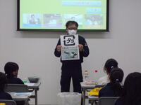 書道の先生にきていただき、今年度の書初めの練習が始まりました。お正月には上手に書けるように教えていただきました。大きな紙にたくさんの墨をつけて、紙いっぱいに力強く書いていました。
