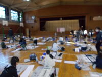 今日は、3,4年生の練習でした。4年生が「初もうで」、3年生が「ゆき山」。上手になりたくて、書道の先生に、沢山の児童が書いた字を見せに行き、指導していただいていました。