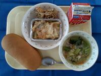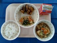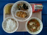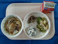 けんちんうどん 牛乳 わかめおにぎり ごまちくサラダ 小魚カレー味 |